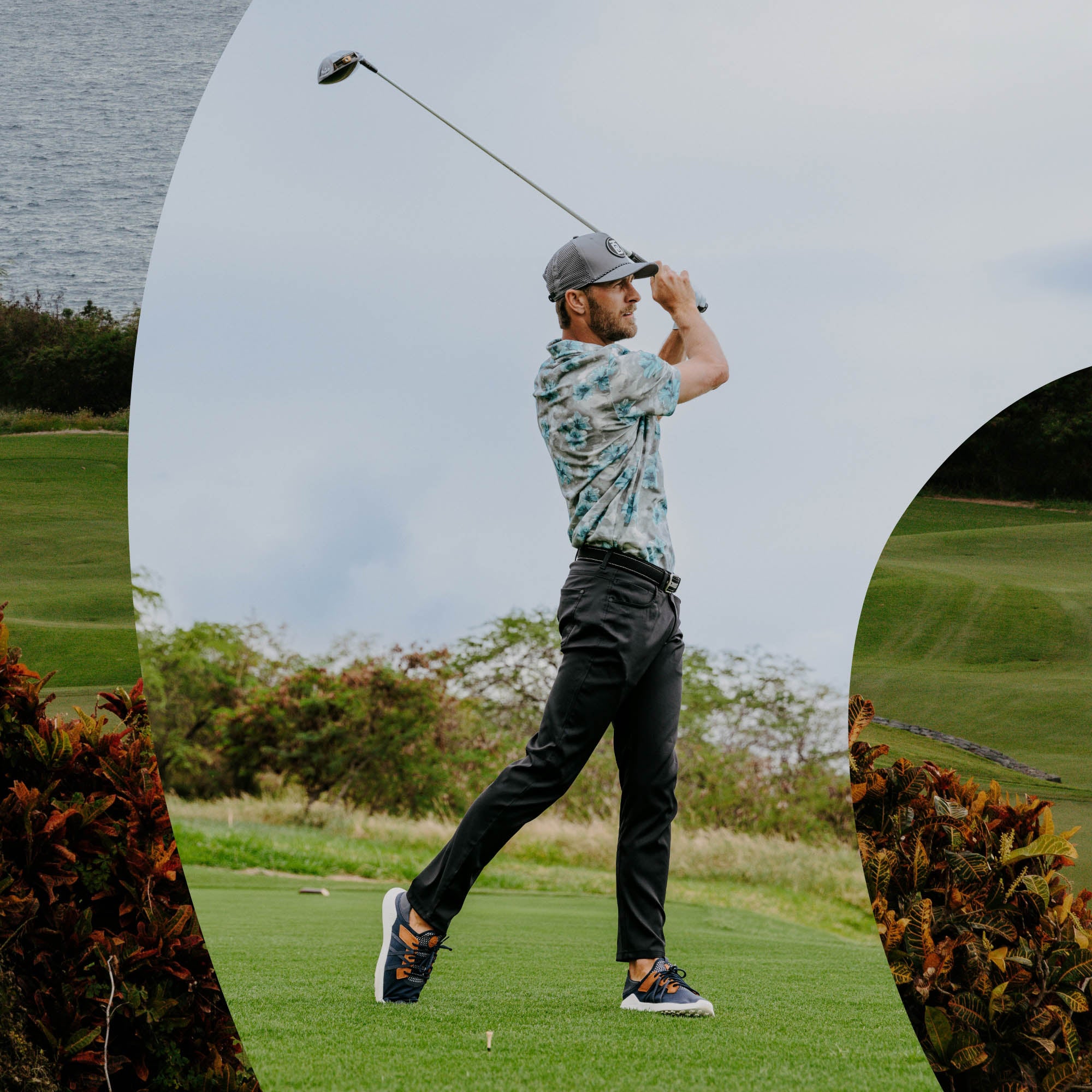 Leave the slides and sandals at home—the Manele redefines versatility. Featuring effortless on-and-off convenience and a spikeless design, it's perfect for both the course and the clubhouse. The Manele combines performance with distinctive style and craftsmanship, elevated by waterproof leather accents and detailed with artwork inspired by the calming Hawaiian winds.