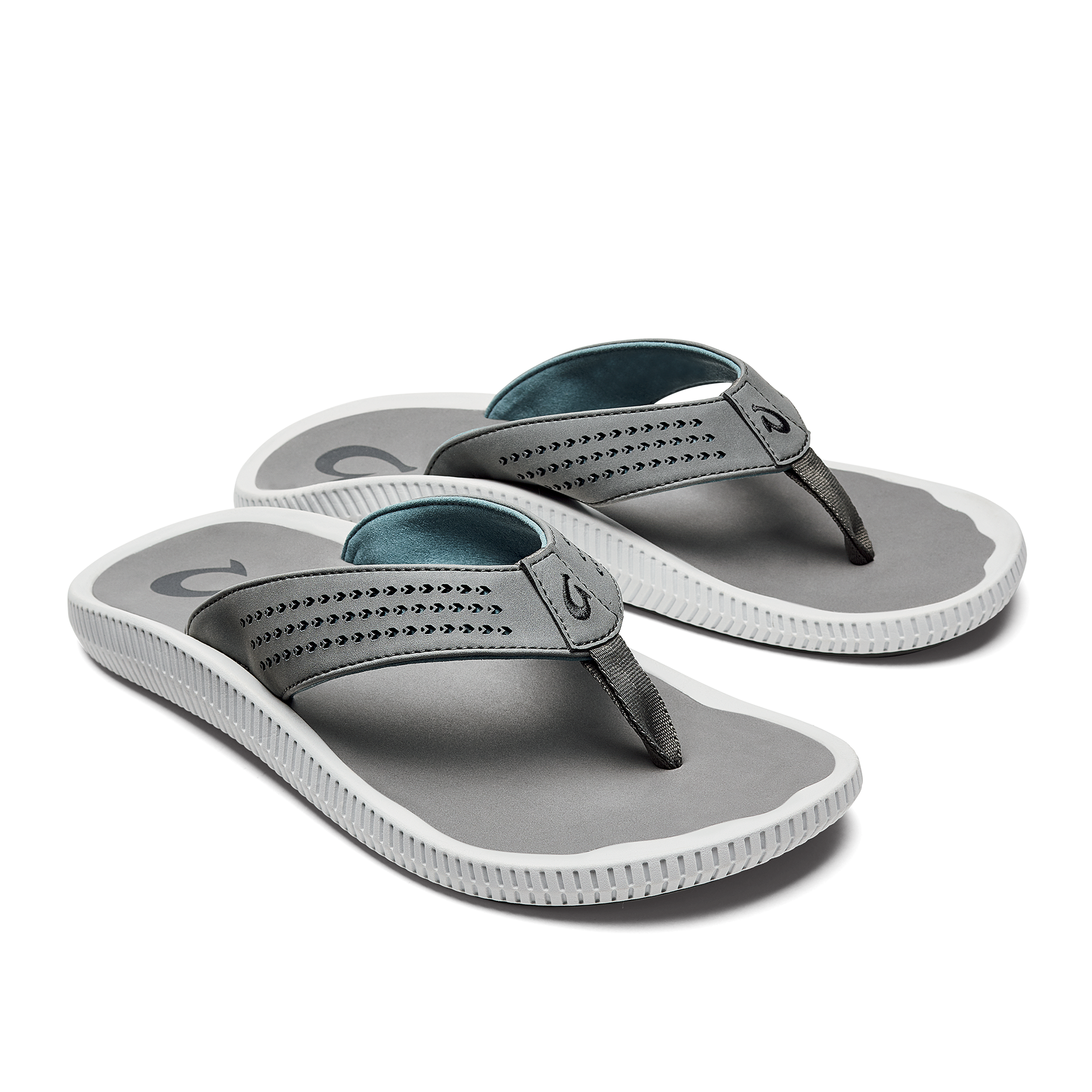 OluKai Craftsmanship: Features Kalo plant-inspired laser-cut upper straps and an embroidered hook logo.