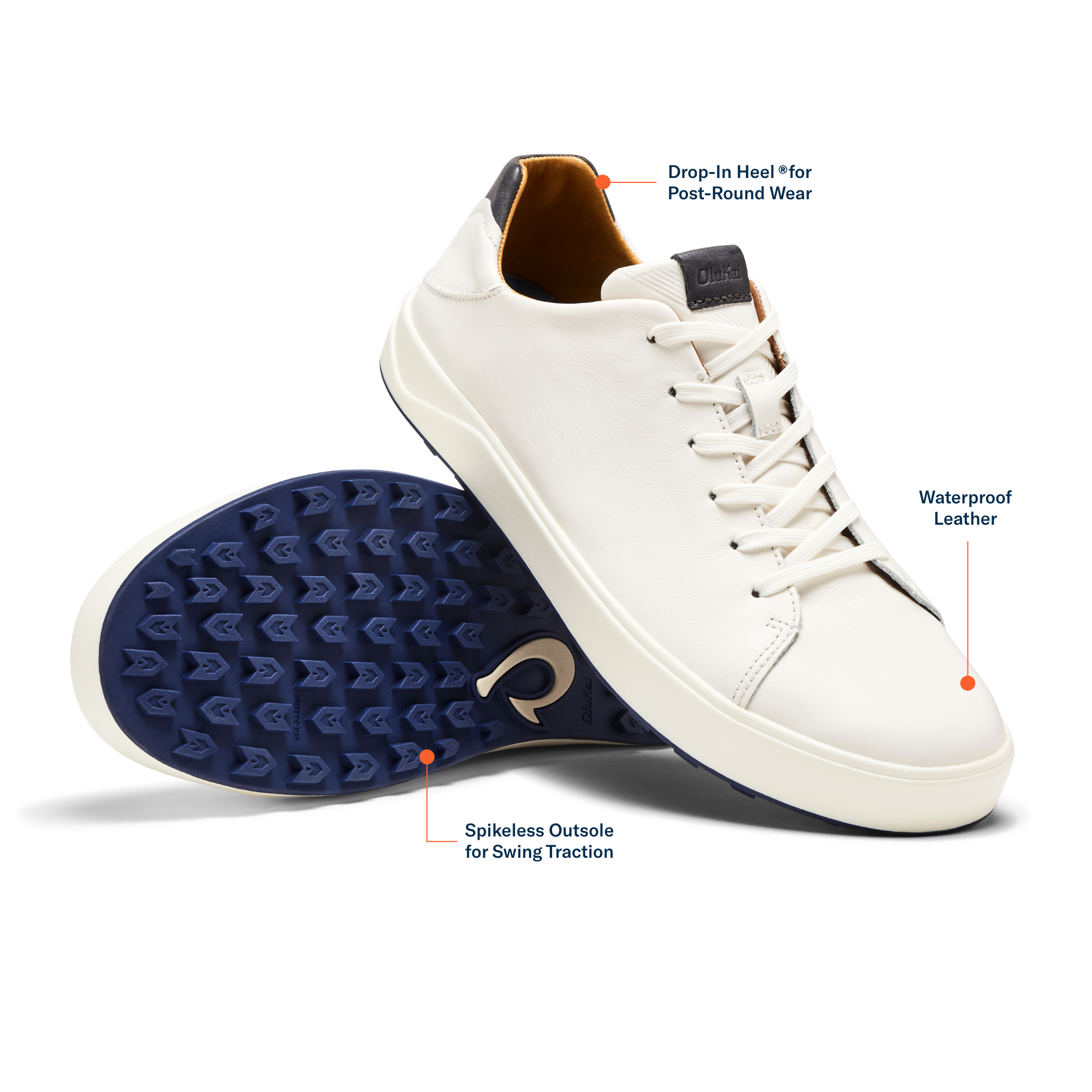 Designed with the dedicated golfer in mind, the Wai‘alae combines fully waterproof leather and a versatile, spikeless design for performance in any weather. Its effortless on-and-off convenience means no more changing shoes from the course to the clubhouse. Inspired by ocean waves, the midsole enhances comfort with a design that mirrors the trough before a wave's rise, ensuring stability and style in every step.